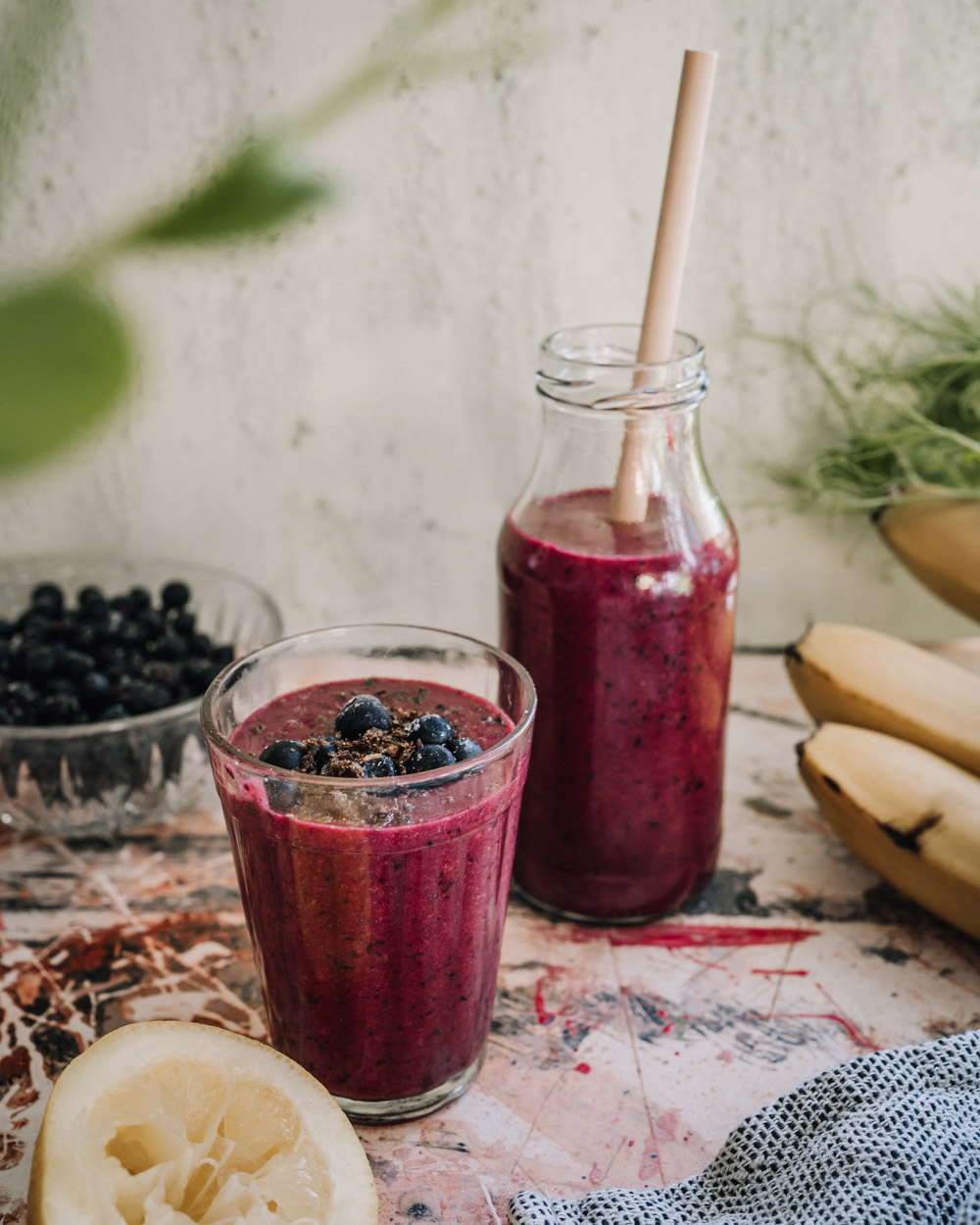 Ananas-mustikkasmoothie maistuu niin aamu-, ilta- kuin välipalanakin. Raikas smoothie saa kermaisen rakenteen banaanista ja ripaus vaniljaa antaa ihanan säväyksen makumaailmaan.