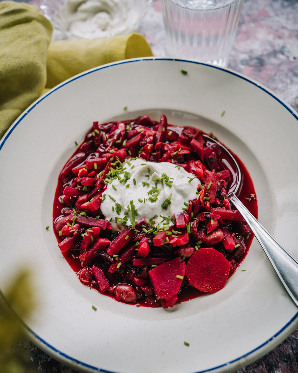 Borssikeitto on alunperin ukrainalainen ruokalaji, jonka kauniin punainen väri tulee punajuuresta. Keitossa on lisäksi mm. kaalia ja Kasviskapinan versiossa proteiinia tuovat pavut.