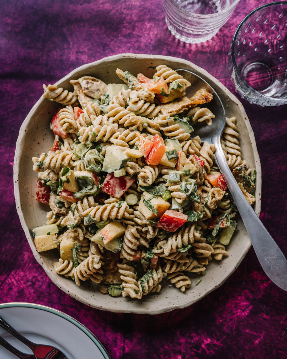 Kanaton pastasalaatti on helppo ja herkullinen arkiruoka, joka maistuu kaikille! Curryinen kastike ja tuoreet kasvikset tekevät tästä pastasalaatista täydellisen lounasevään tai piknikruoan.