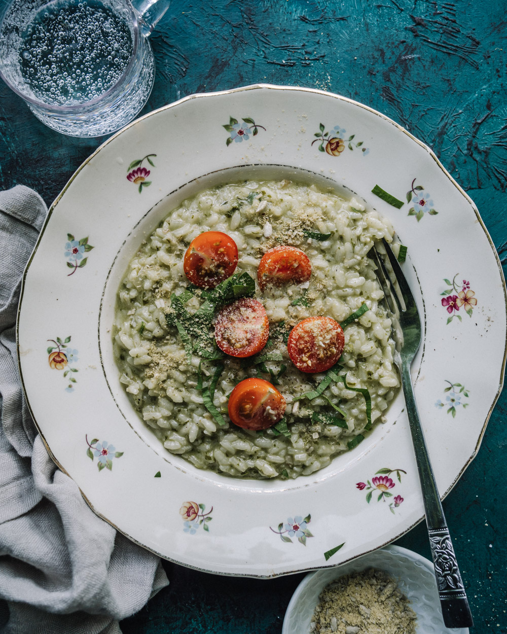 Lipsikkarisotto saa makunsa voimakkaasta lipstikkatahnasta. Kirsikkatomaatit raikastavat huikean aromaattisen ja helppotekoisen risoton.