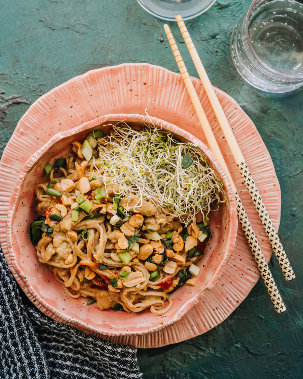 Maapähkinävoi-pinaattinuudelit valmistuvat nopeasti ja ovat superherkullisia! Kokeile helppoa reseptiä, johon sopii monenlaiset kasviproteiinit.