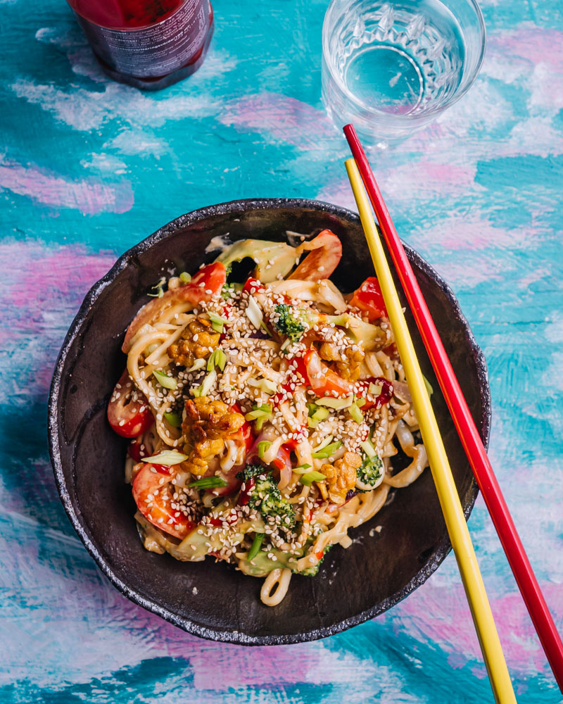 Maapähkinävoi-tempenuudelit ovat helppo ja täyttävä vegaaninen arkiruoka, jossa tahmea maapähkinävoikastike, rapeaksi paistettu tempe ja kasvikset yhdistyvät maukkaaksi nuudeliruoaksi. Ruoka on pöydässä noin puolessa tunnissa.
