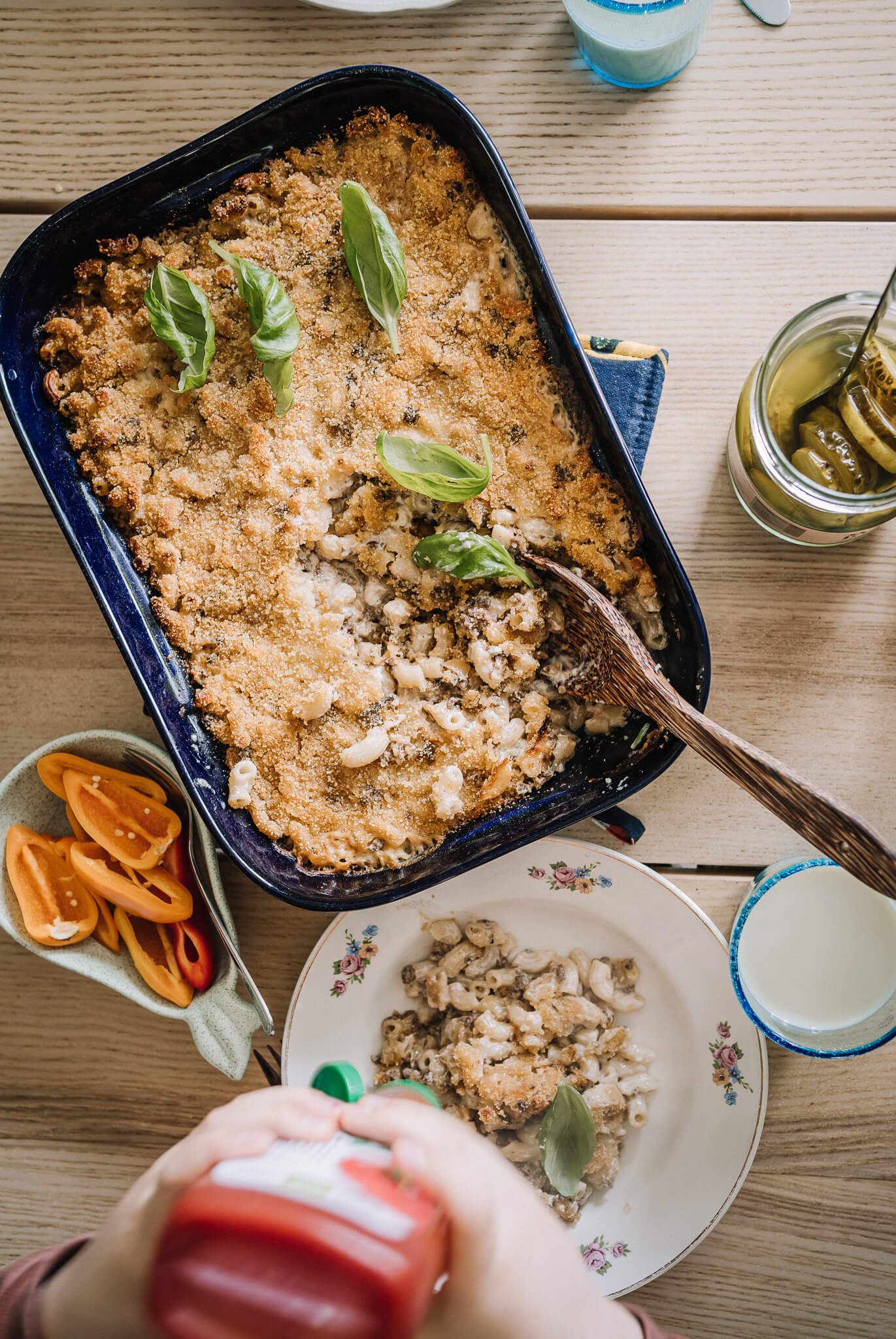 Voit käyttää tähän makaronilaatikkoon maustamatonta kaurakermaa tai jotain valmiiksi maustettua, valikoimaa löytyy nykyään vaikka kuinka. Juuston makuinen kaurakerma sopii loistavasti, jos haluaa laatikkoon mac&cheesemäistä twistiä.