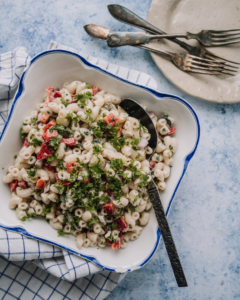 Makaronisalaatti on retroklassikko, joka toimii monessa tilanteessa. Helppotekoinen salaatti on myös muksujen mieleen.