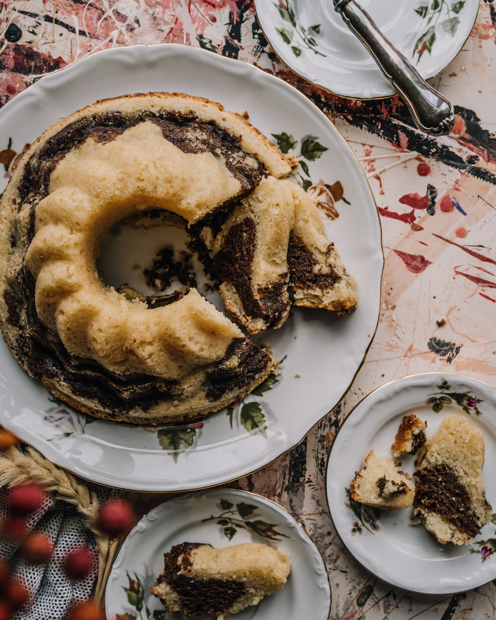 - Laita puolet vaaleasta taikinasta kakkuvuoan pohjalle, levitä sen päälle tumma taikina ja päälle vielä loput vaaleasta. Töki taikinaa pohjaan asti haarukalla, jotta saat aikaan kivan tiikerikuvion.
