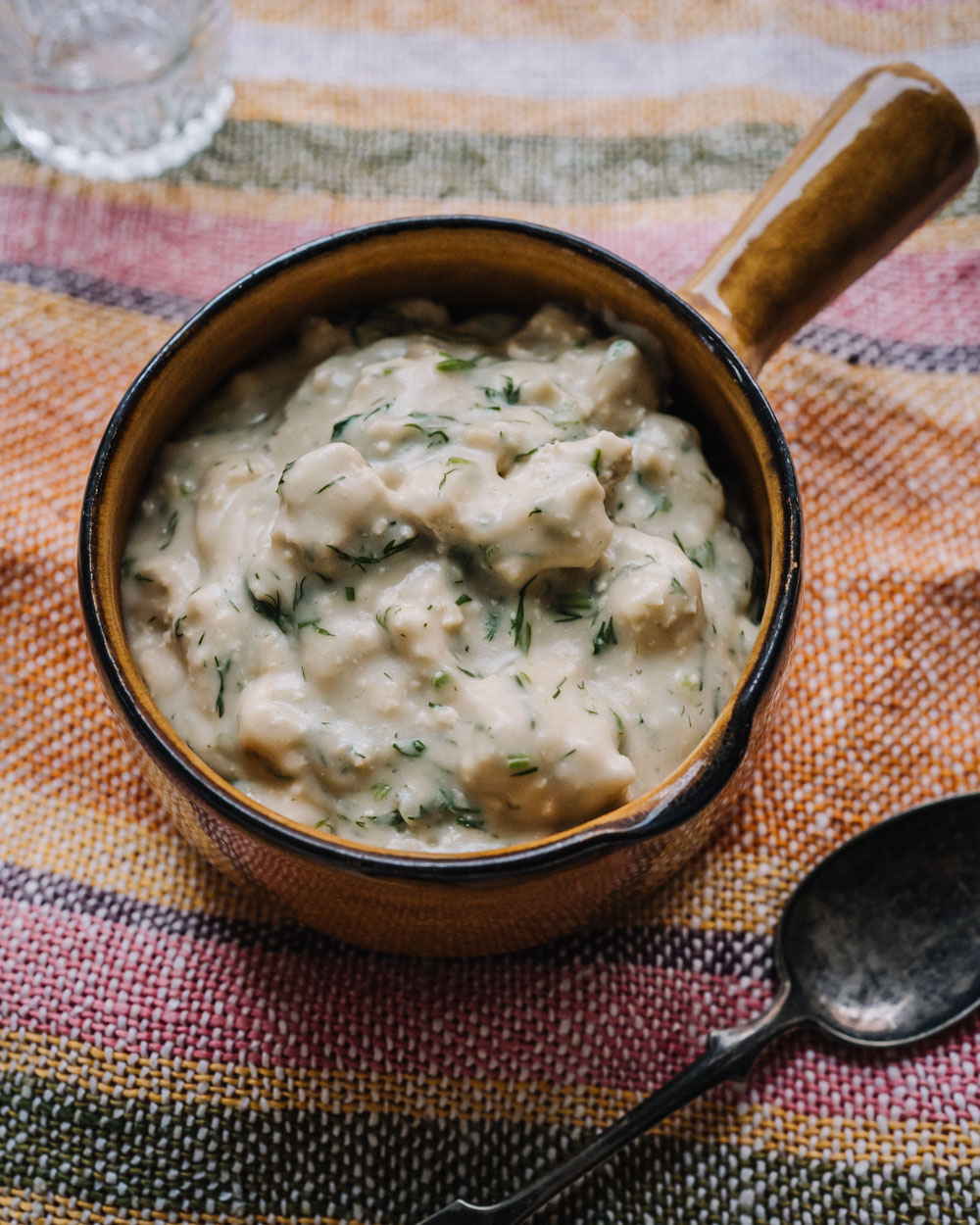Munaton kastike on täydellinen vaihtoehto perinteiselle kananmunakastikkeelle! Tofu, tilli ja kala namak -suola tuovat samanlaisen fiiliksen, mutta täysin kasvipohjaisesti.