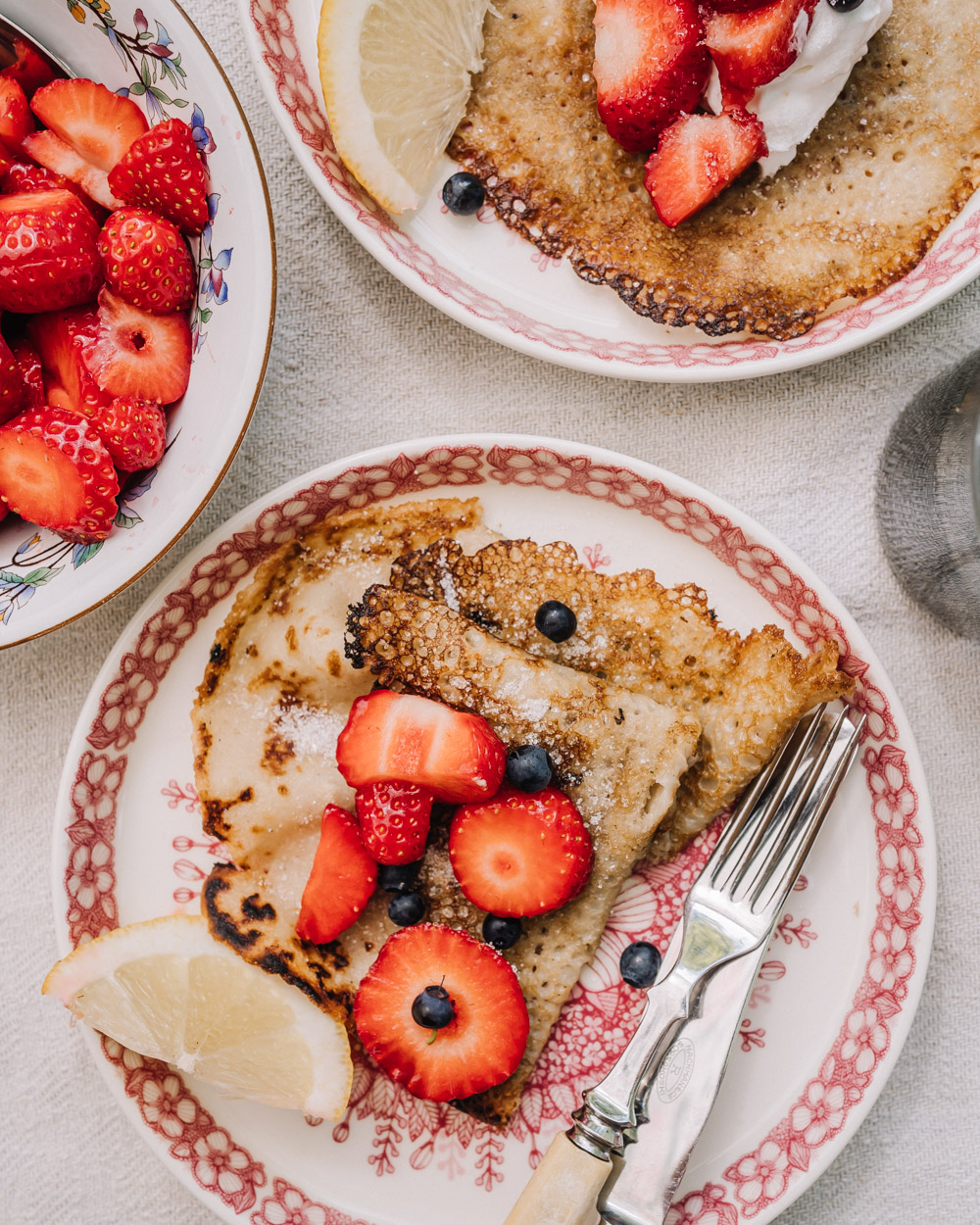 Muurinpohjaletut kuuluvat kesään! Ne saavat rouheaa makua ohrajauhoista ja onnistuvat erinomaisesti ilman kananmunaa. Tarjoile lettujen kanssa makeita tai suolaisia täytteitä.