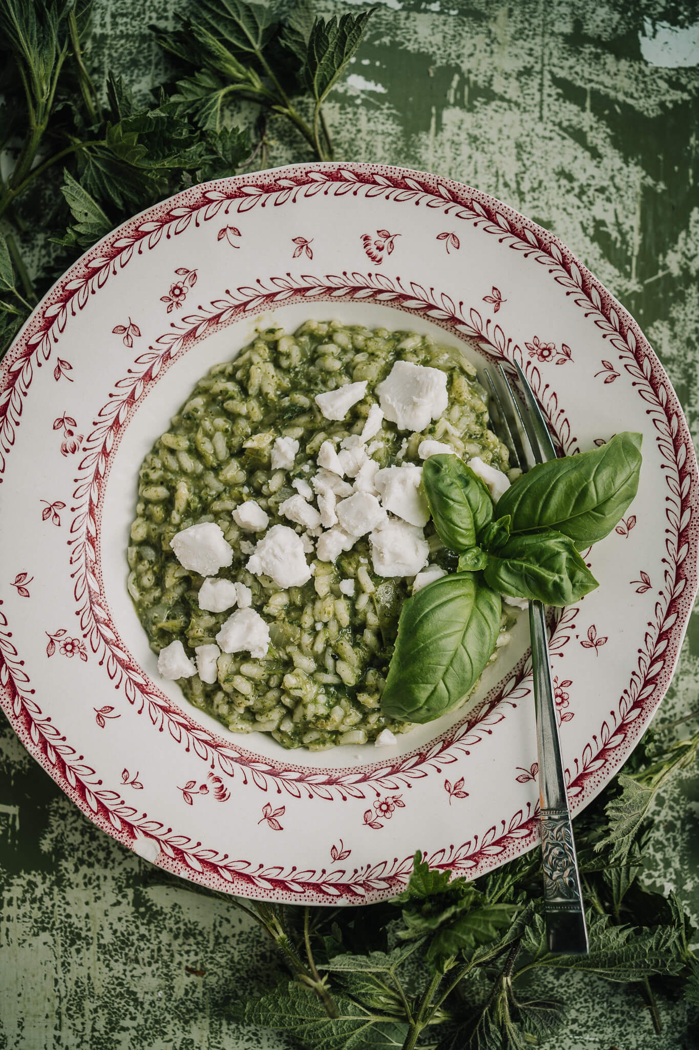 Nokkosrisotto on kesäruokien aatelistoa. Tämän risoton juju on nokkospyreessä, joka sekoitetaan lopuksi risoton joukkoon. Vegaanisen risoton tekeminen on helppoa ja lopputulos on todella herkullinen.