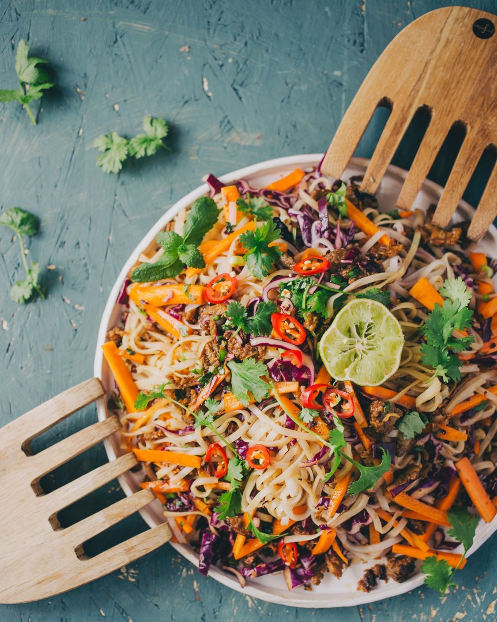 Nyhtökaura-nuudelisalaatti on juuri niin hyvää, kuin miltä se kuulostaakin. Ihanan makean tulista, sopivan hapokasta ja suolaista. Nyhtökaura tuo salaattiin ruokaisuutta.