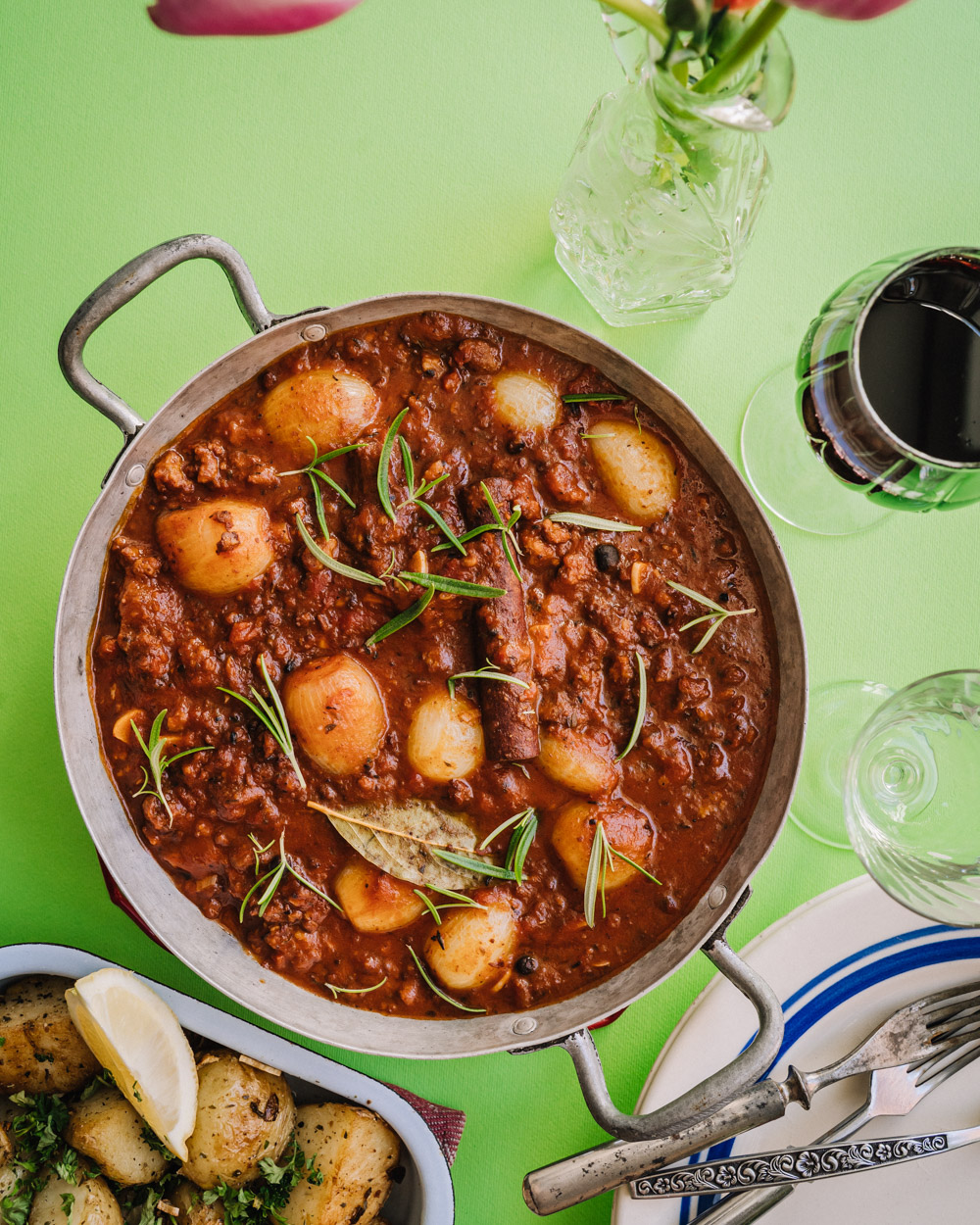 Stifado on kreikkalainen pataruoka, jossa yhdistyvät punaviini, tomaatti, kaneli ja pehmeiksi hautuneet sipulit. Kasviskapinan versio tehdään lihan sijaan Nyhtökaurasta, joka imee kastikkeen maut itsensä ja tekee padasta herkullisen täyteläisen.