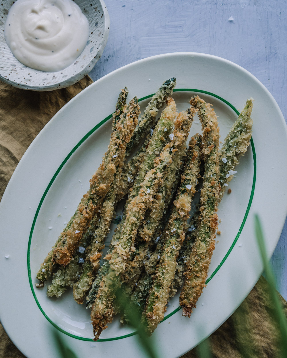 Pankopaneroidut parsat ovat herkkua, jotka sopivat erinomaisesti vaikkapa osaksi pääsiäismenua. Rapeat parsat voi tarjoilla lisukkeena tai alkupalana vegaanisen majoneesin kanssa.