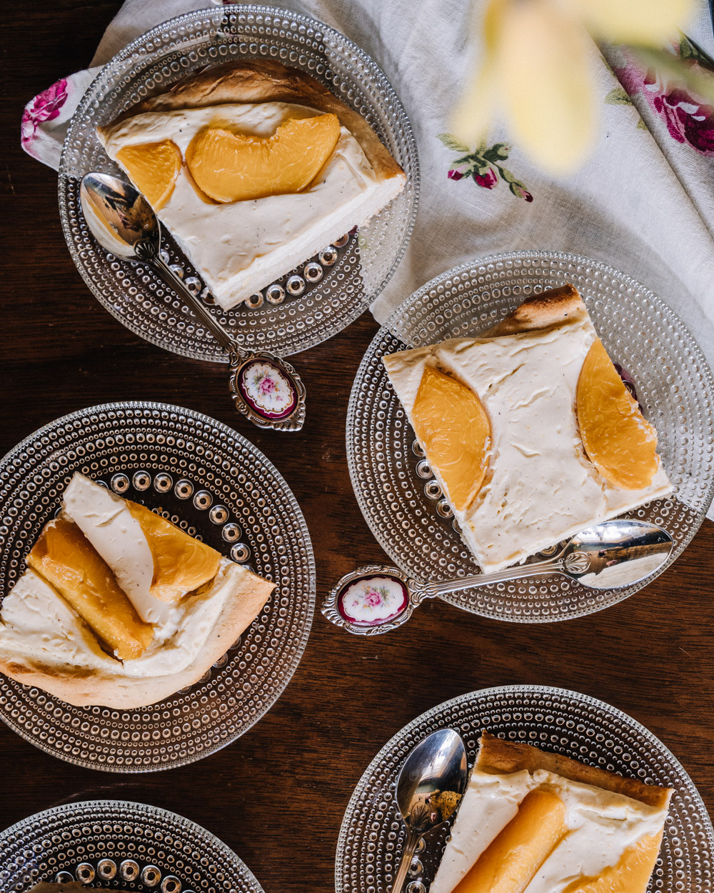 Persikka-rahkapiirakka on keväinen leivonnainen, täydellinen pääsiäisen kahvipöytään! Mehevä pullapohja ja makeat persikat tekevät tästä kasvipohjaisesta rahkapiirakasta ikisuosikin!