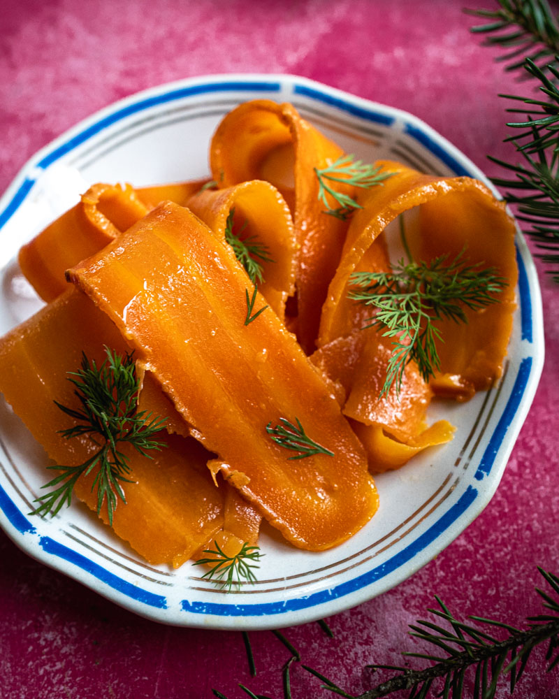 Helppo porkkala syntyy ilman suolakuorta ja vain muutamasta aineksesta. Yön yli marinointi antaa porkkanalle kylmäsavulohta muistuttavan maun, joka toimii ihanasti joulun saaristolaisleivällä, alkupaloissa ja juhlapöydän lisukkeena.