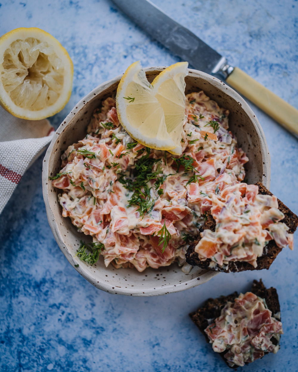 Porkkalatahna maistuu blinien, ruisnappien tai saaristolaisleivän kanssa nautittuna. Tillillä ja sitruunalla maustettu tahna on joulupöydän suosikki!