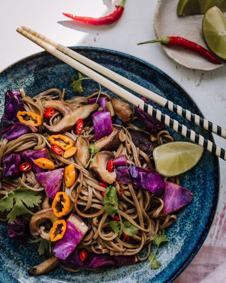 Punakaali ja siitakesienet ovat mainio parivaljakko. Tähän ruokaan sopii mainiosti myös muut sesongin vihannekset, kannattaa kokeilla vaikkapa kiinankaalia, paprikaa ja porkkanaa.
