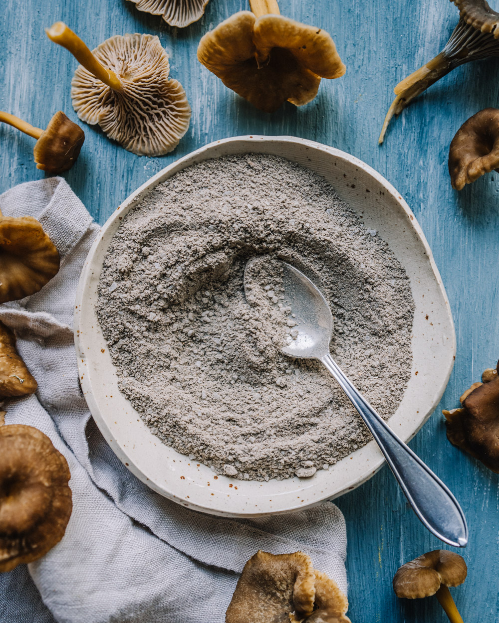 - Lisää suola ja jatka hienontamista, kunnes tuloksena on lähes jauhomainen ja ihanan aromaattinen sienisuola.