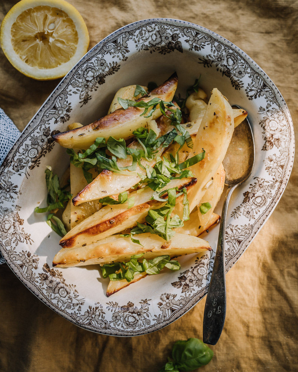 Sitruunaiset lohkoperunat ovat täydellinen lisuke vaikkapa grilliruuille tai hampurilaisille. Erinomainen rakenne perunoihin syntyy paistamalla niitä ensin uunivuoassa liemessä ja lopuksi paahtamalla niihin rapea pinta.