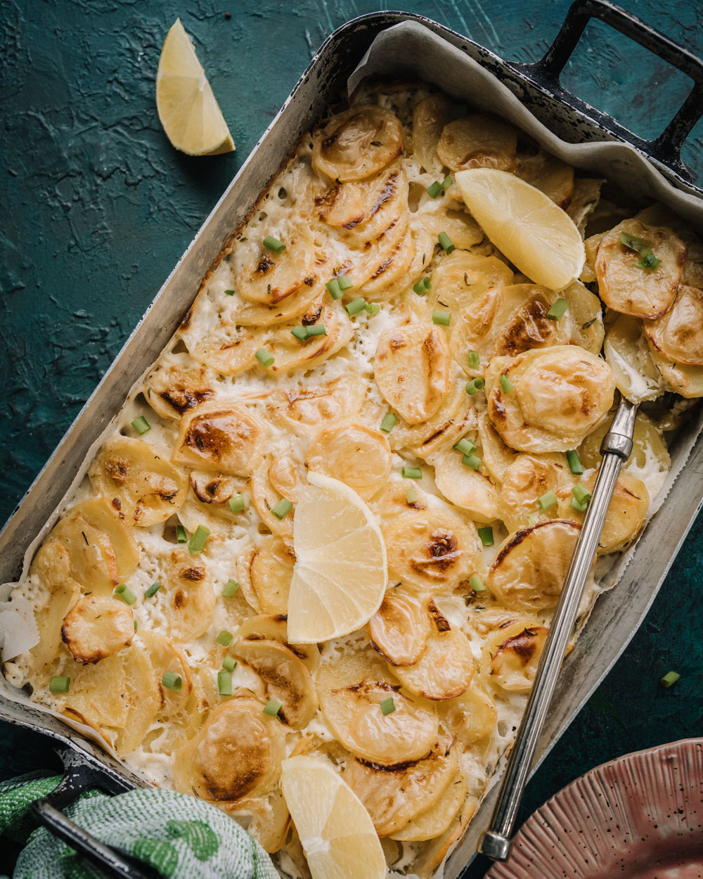 Sitruunaiset valkosipulikermaperunat tuovat vaihtelua ruokapöytään. Sitruuna antaa perunalisukkeelle raikkaan maun, jonka ansiosta se on parhaimmillaan keväisillä aterioilla.
