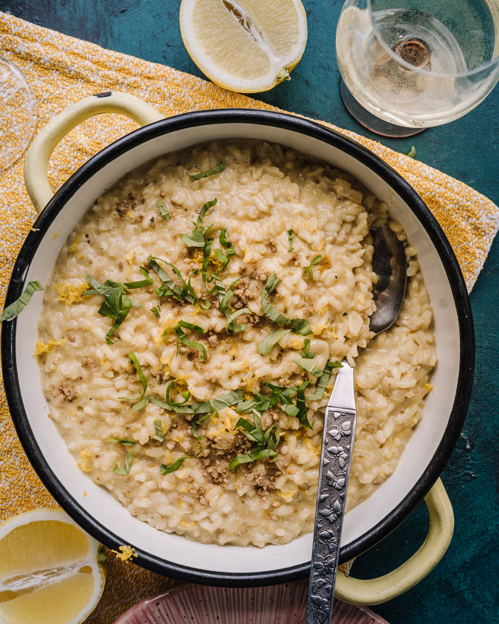 Sitruunarisotto on raikas ruoka sellaisenaan tai lisukkeena tarjoiltuna. Vegaanisen risoton tekeminen on helppoa ja lopputulos superherkullinen.