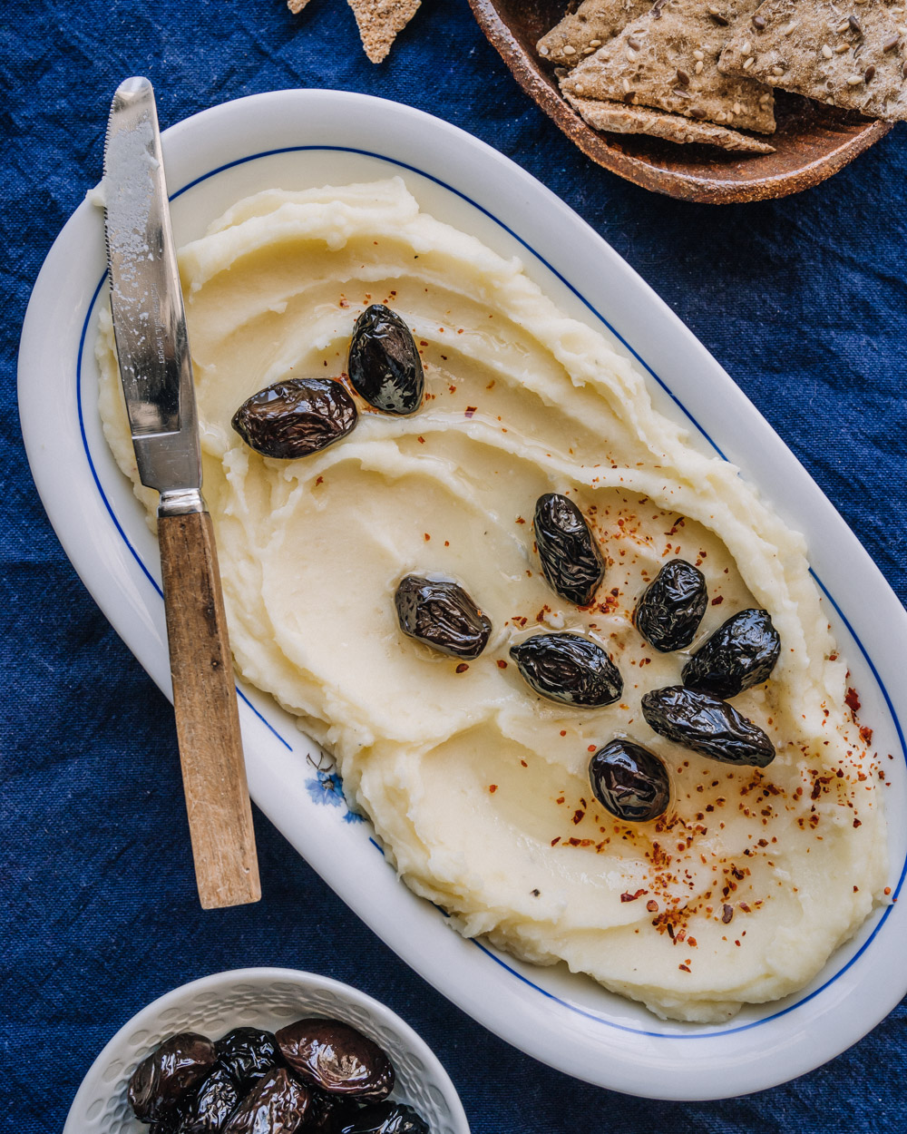 Tarjoile skordalian kanssa leipää, oliiveja ja vaikka dippikasviksia. Paahdetut punajuuret ovat klassinen kaveri perunatahnalle. Skordalia toimii hyvin myös grilliruokien lisukkeena ja meze-pöydän tarjottavana.