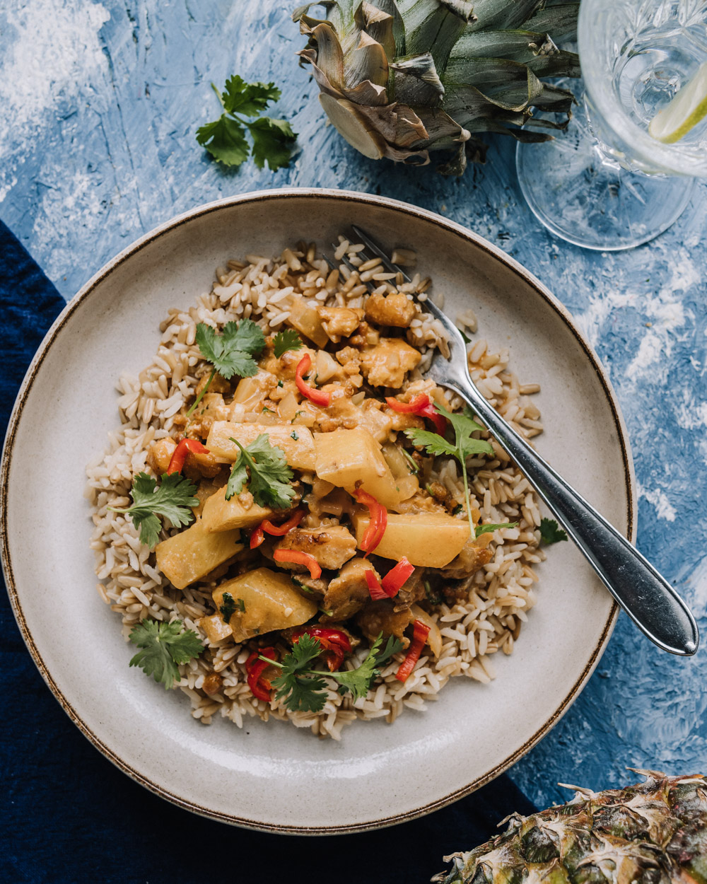 Thaicurry tofulla ja ananaksella on lempeän mausteinen ja aivan mahdottoman herkullinen ruoka. Ananas antaa helppotekoiselle currylle ihanan makean vivahteen.