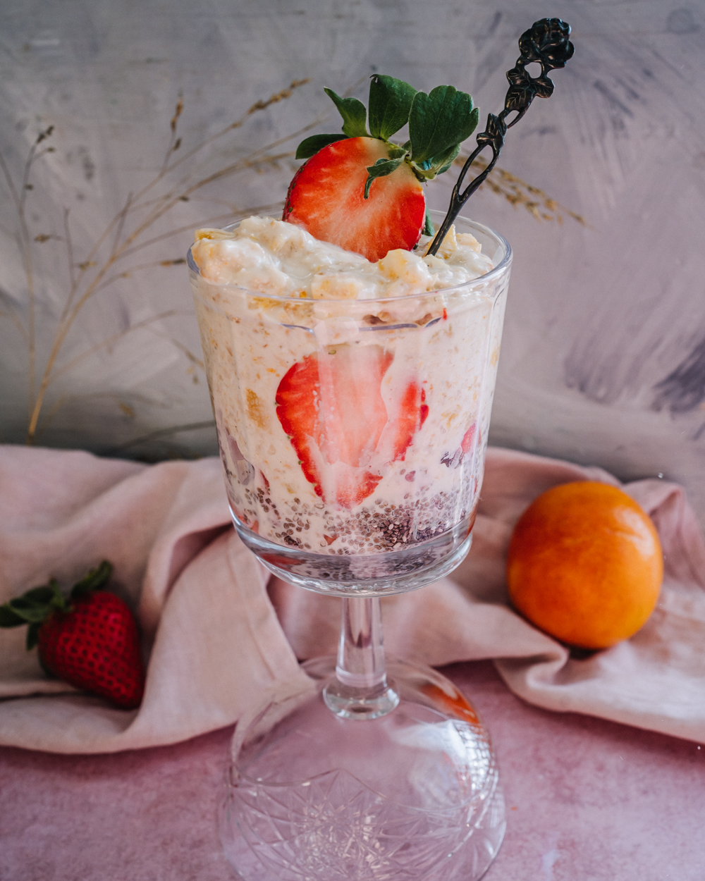 Veriappelsiinituorepuuro on talvisen aamun pelastus! Raikas veriappelsiini ja makeat hedelmät antavat piristävän startin päivään, kunhan vain muistaa laittaa puuron edellisenä iltana tekeytymään.