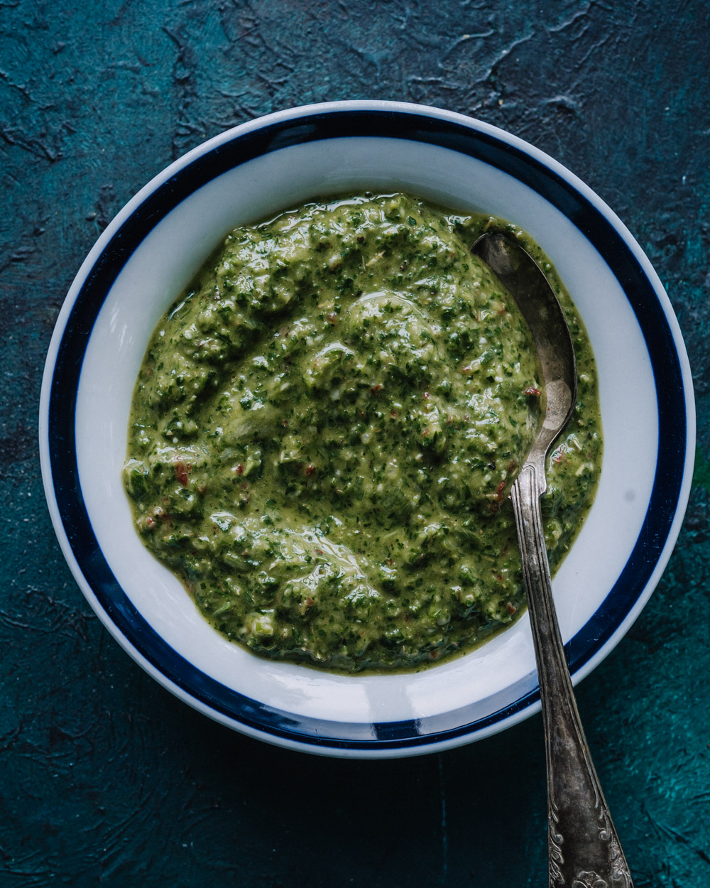 Uudenlaisen twistin argentiinalaislähtöinen soossi saa, kun sen valmistaa kotoisista villivihanneksista. Paras lopputulos syntyy käyttämällä pääosin mietoja villiyrttejä ja lisäämällä joukkoon hieman voimakkaamman makuisia kasveja.
