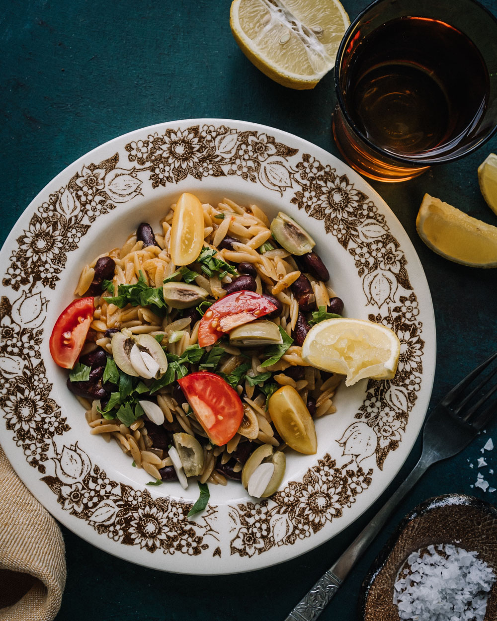 - Lisää orzo, huuhdellut pavut sekä kasvisliemi. kuumenna kiehuvaksi. Anna pastan kypsyä noin kymmenen minuuttia, kunnes se on kypsää. Sekoittele usein.